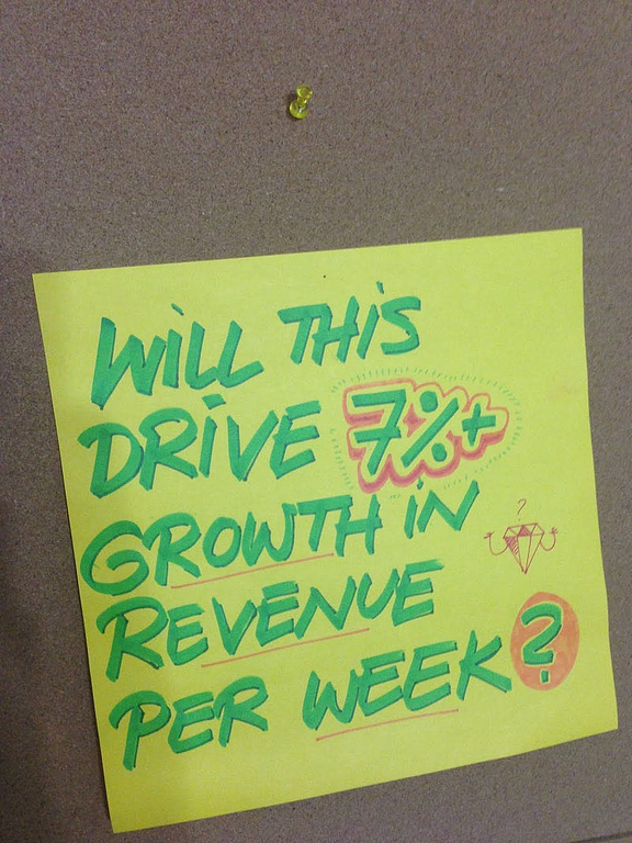 On our wall at YC we had a big sign on our wall that said, “Will this help us grow 7%?”